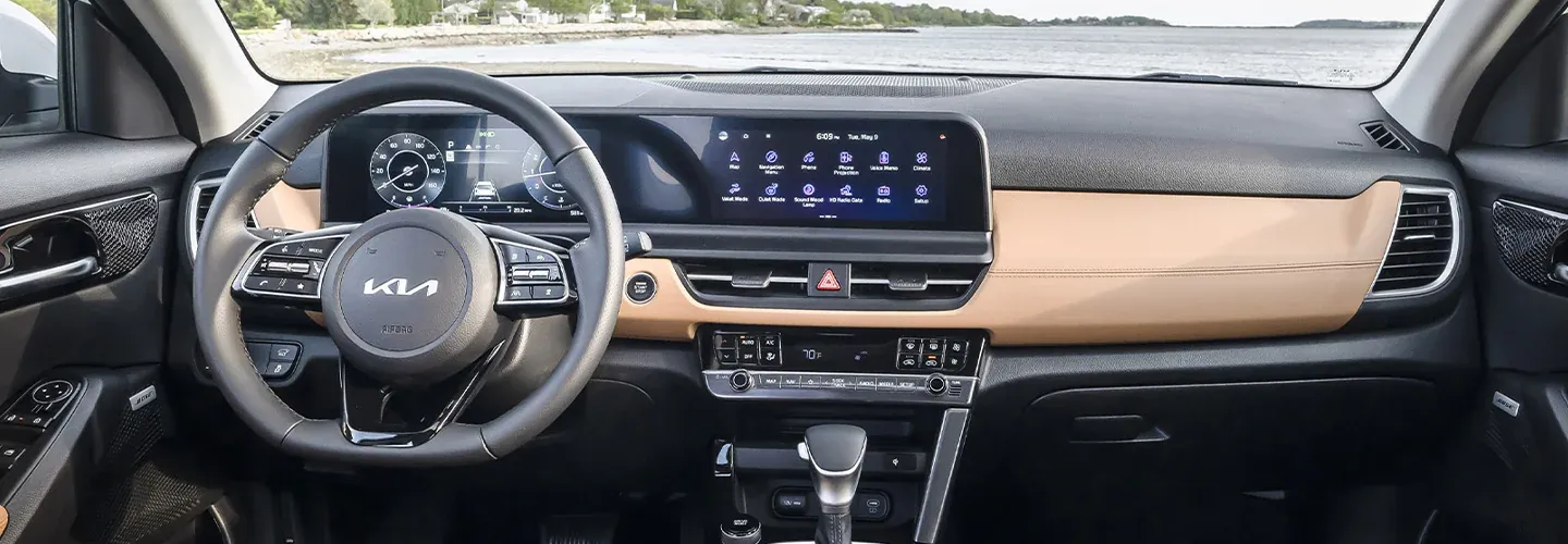 Experience the cutting-edge technology integrated into the 2025 Kia Seltos interior. Enhance your driving experience with convenient features such as remote keyless entry and a vehicle immobilizer. Monitor your vehicle's performance via the 4.2-inch or 10.25-inch instrument display. The sophisticated infotainment system boasts an 8-inch or 10.25-inch touchscreen display, USB connectivity, Bluetooth® technology and seamless wireless integration with Apple CarPlay® and Android™ Auto.